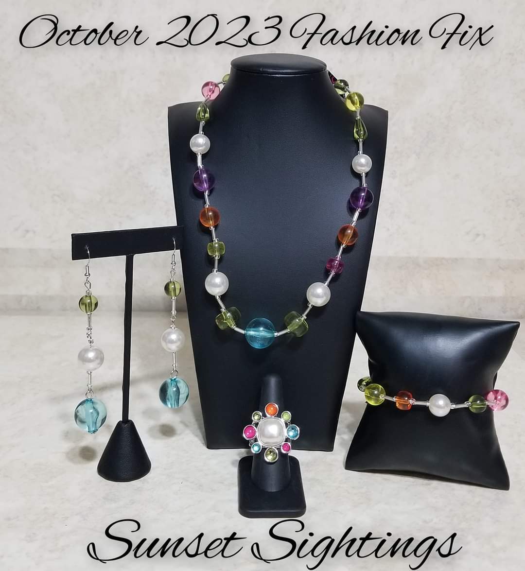 Includes one of each accessory featured in the Sunset Sightings Trend Blend in October's Fashion Fix:
