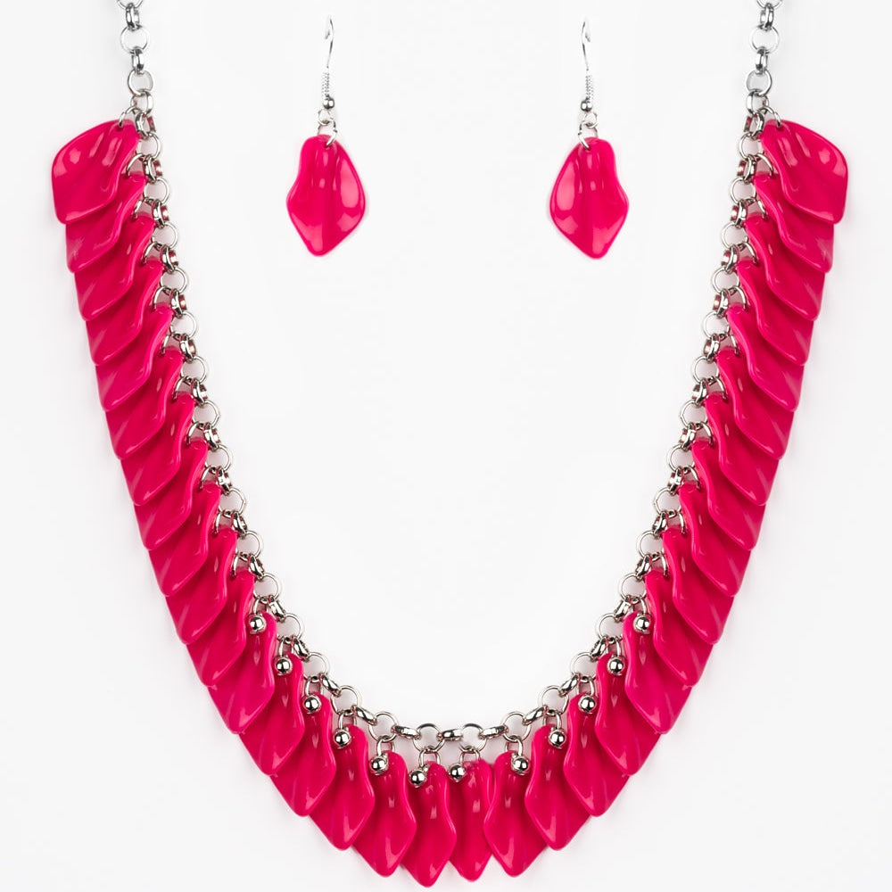 Flamboyant pink acrylic petals in layered rows.